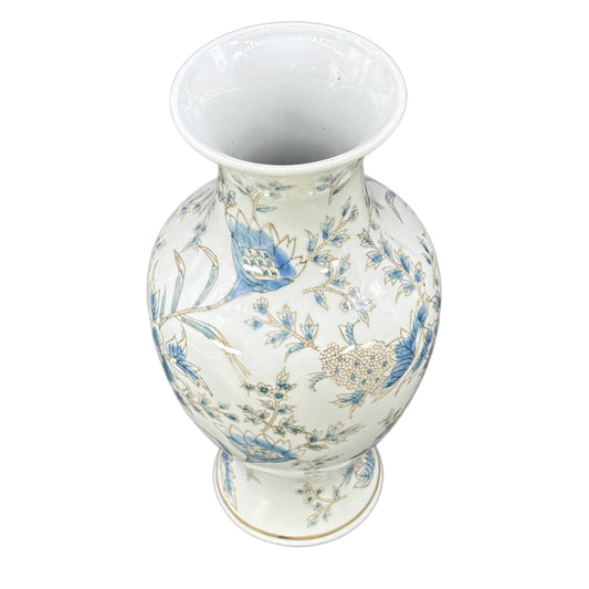 White and Blue Chinoiserie Indoor Ceramic Vase 14"