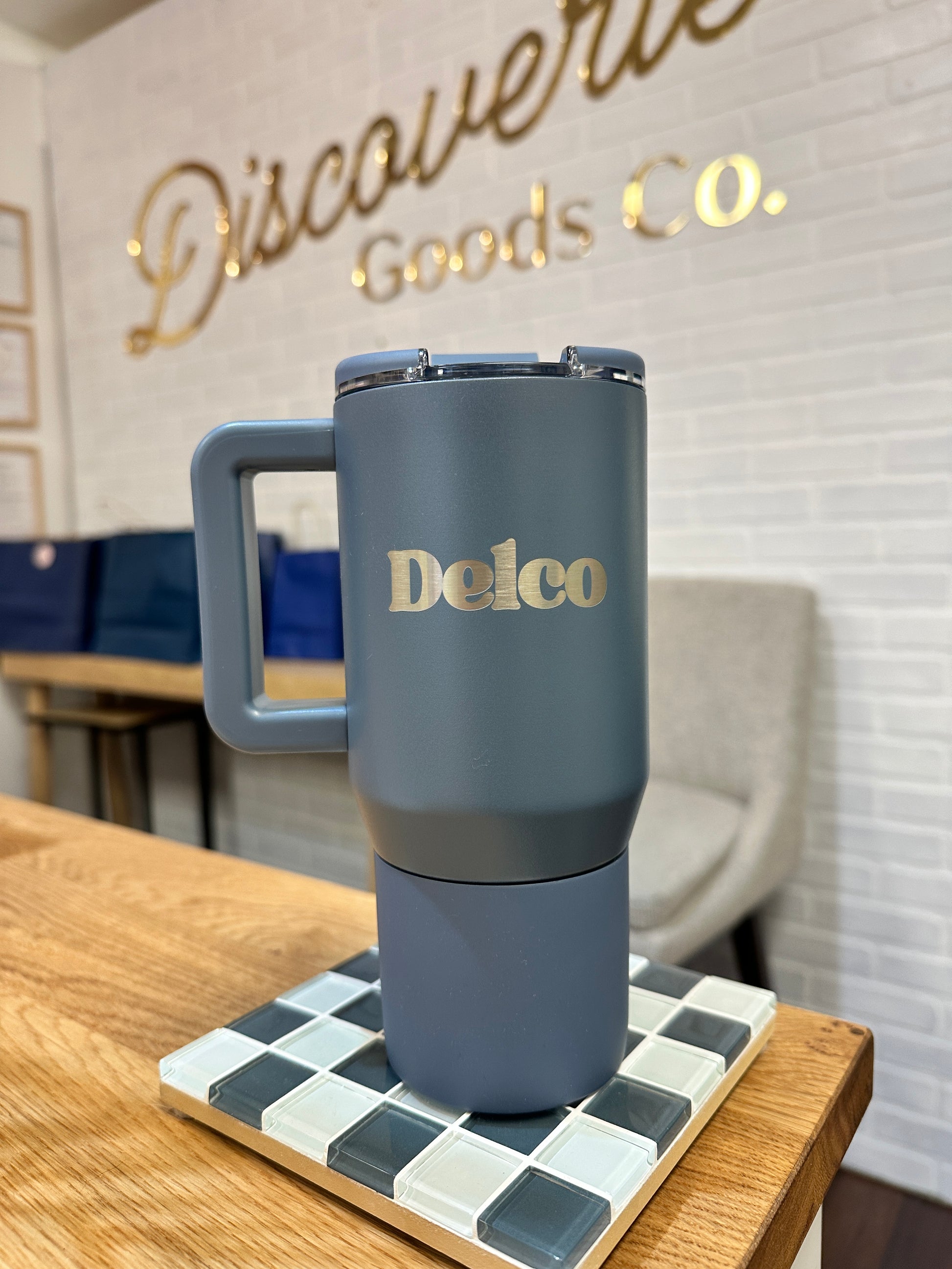 Your Daily Brew, Upgraded. Meet the 20 oz Delco Traveler Coffee Mug, your new go-to for coffee runs, commutes, and everything in between. It’s the same shape and size you love from our 20 oz Traveler, now with a brand-new soft-touch lid made for easy sipping on the move. Product Details: Keeps drinks hot up to 6 hours, cold up to 12 Leakproof Soft-touch ambidextrous lid Ceramic-lining Cup holder friendly BPA free Dishwasher safe Rubber base